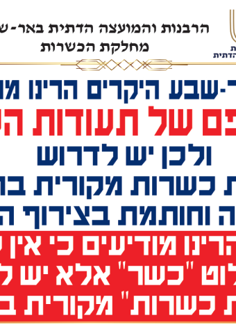 - סוגי תעודות הכשרות ברבנות באר שבע