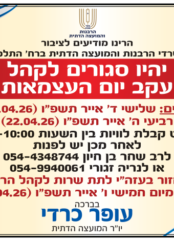 - הודעה לציבור: היום לא תתקיים קבלת קהל אחר הצהריים במועצה הדתית באר שבע