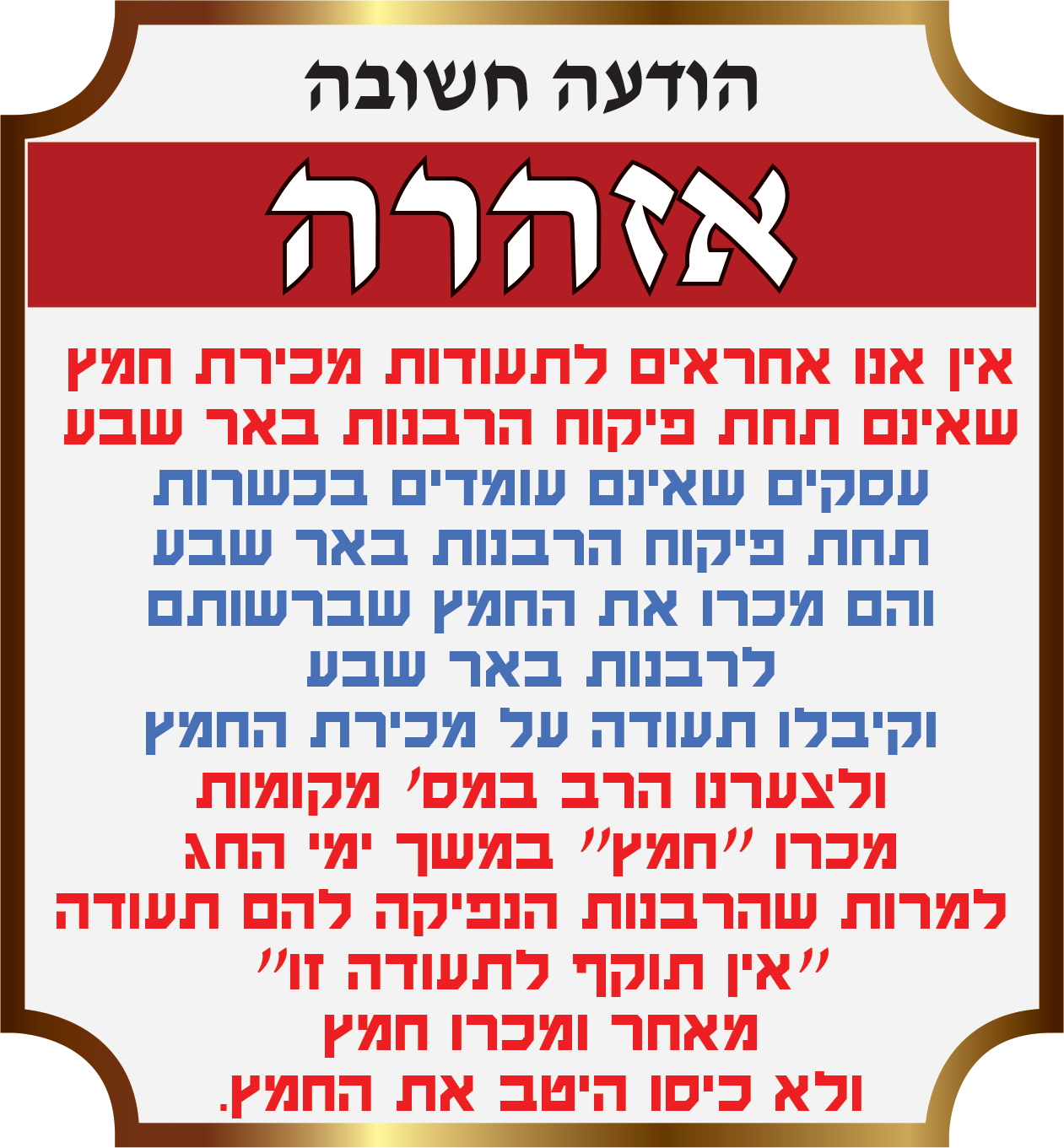 חדשות בכותרות, מהנעשה במועצה הודעה חשובה: אין אנו אחראים לתעודות מכירת חמץ מגורמים אחרים אפריל 13, 2026 פורסם על ידי שמעון שחר יפה 13 אפר